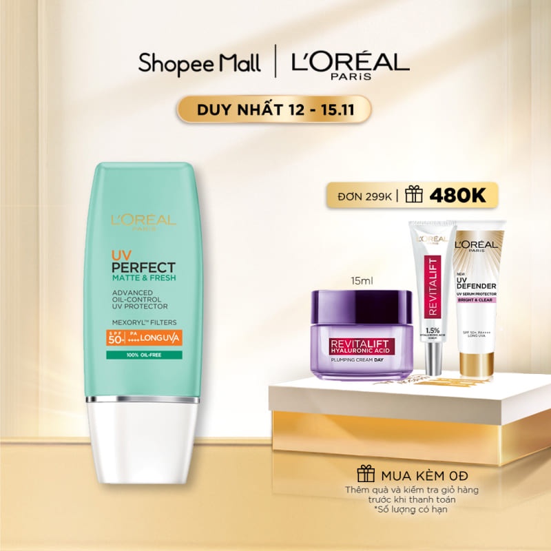 Kem chống nắng bảo vệ da L'Oreal Paris UV Perfect SPF50+ PA++++ 30ml free ship